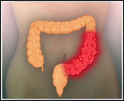 Die Divertikel bilden sich vornehmlich zunächst im Sigma (linker Unterbauch) und breiten sich über weitere Dickdarmbereiche aus.